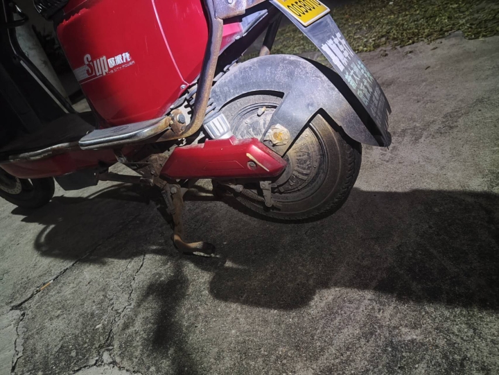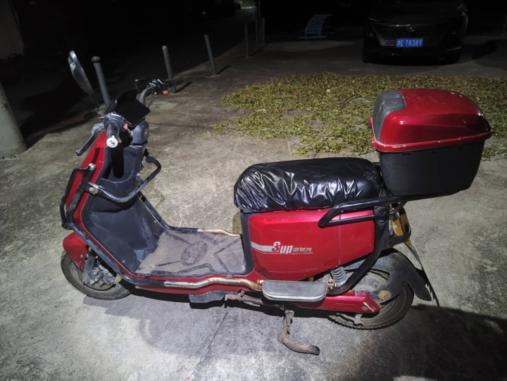 地点在长兴中医院,新国标48伏锂电池,前后都是钢丝防...